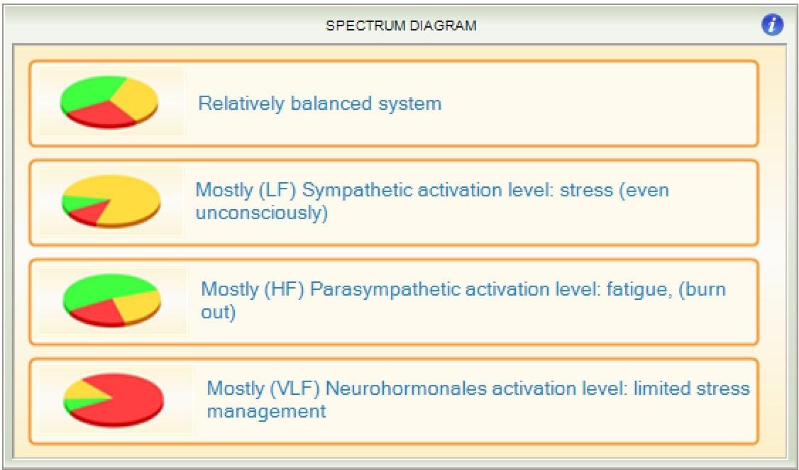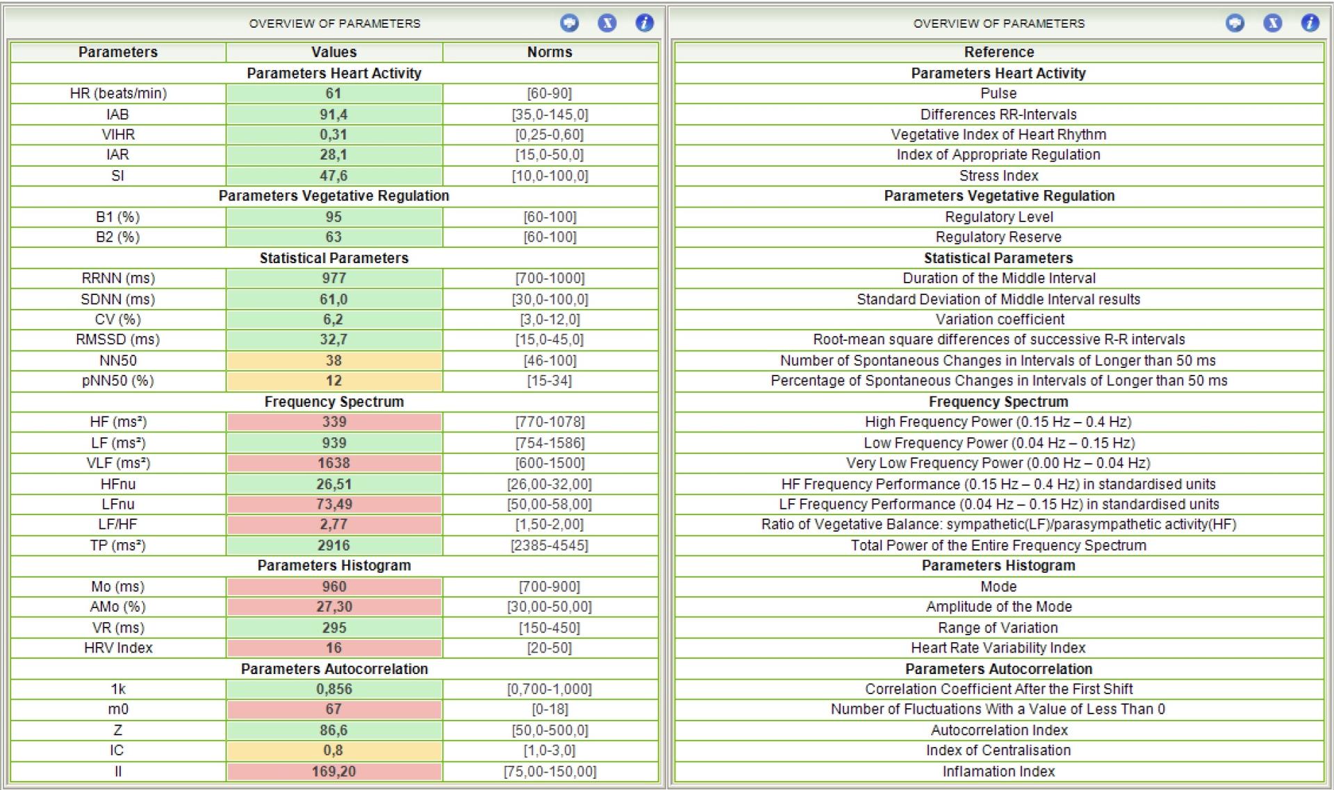 De beoordeling van de huidige psycho-emotionele toestand met behulp van de complexe HRV meting maakt gebruik van de methode van Brain Biorhythm Mapping.